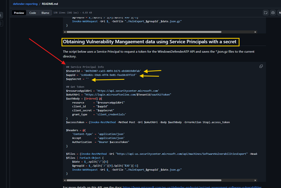 - Obtain Vulnerability Management data using Service Principals with a secret.