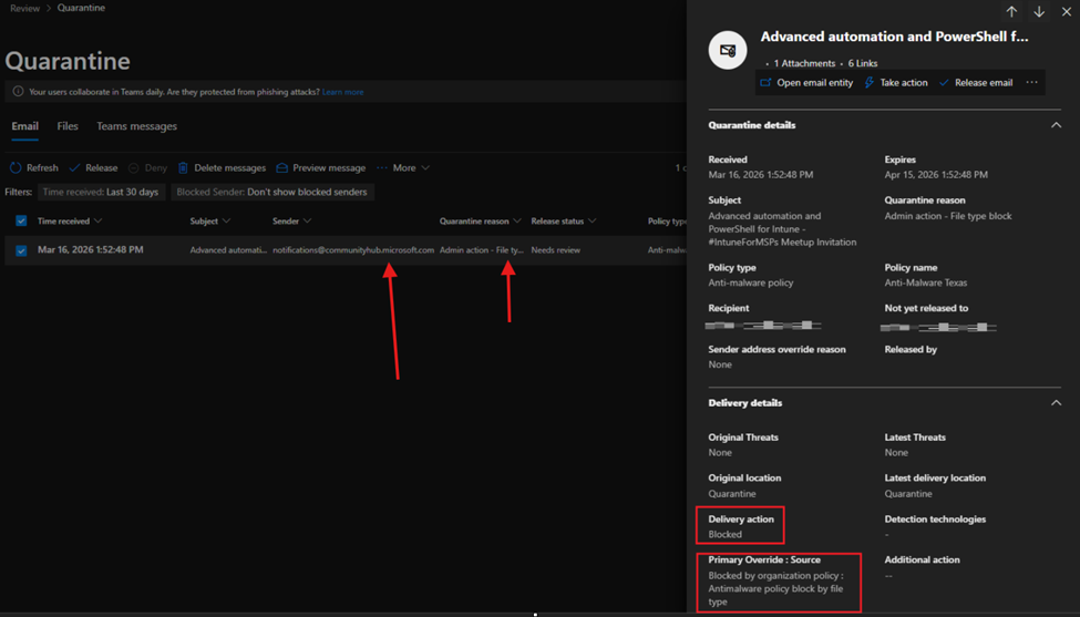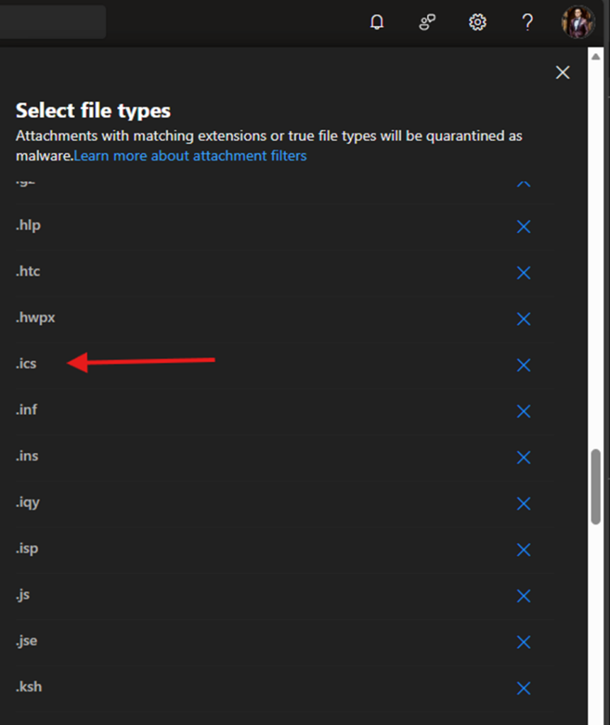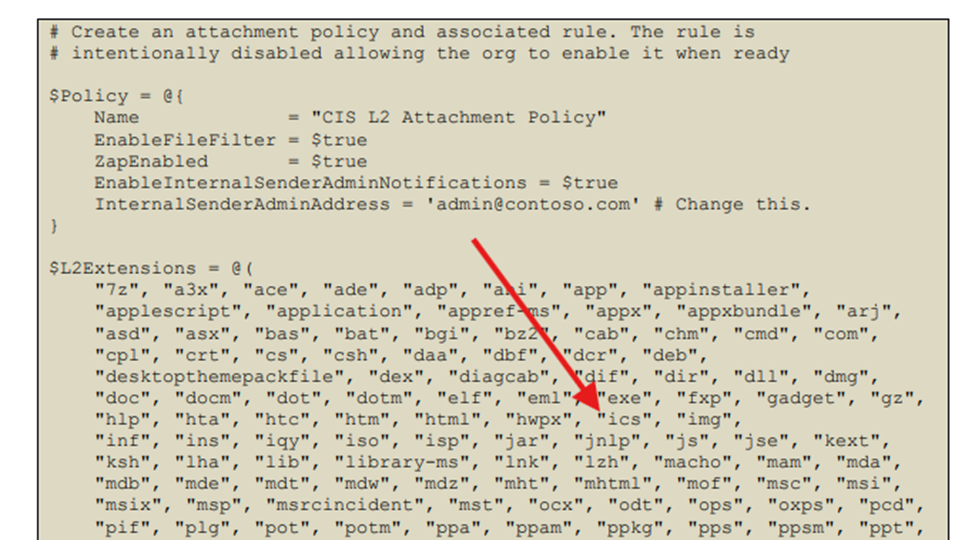 On page 109 of the CIS Benchmark version 5.0 for M365 Level 2 Security, blocking file types is discussed, and a list of files included in that script is provided. Please review and note that I found one of the files is (.ics), which is used as the main file for webinars and attending online sessions like Microsoft events. These events will be blocked.